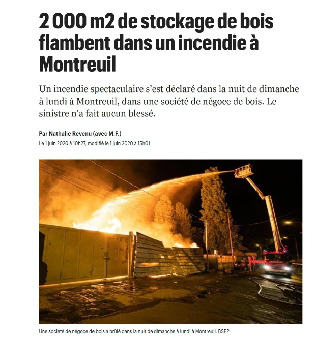 Stock incendié d’un négociant en bois à Montreuil